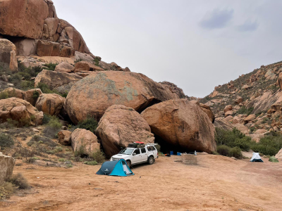 Our 4×4 vehicle is permanently connected to the leading guide via 2-way transceivers, and is equipped with a 12V fridge / freezer.